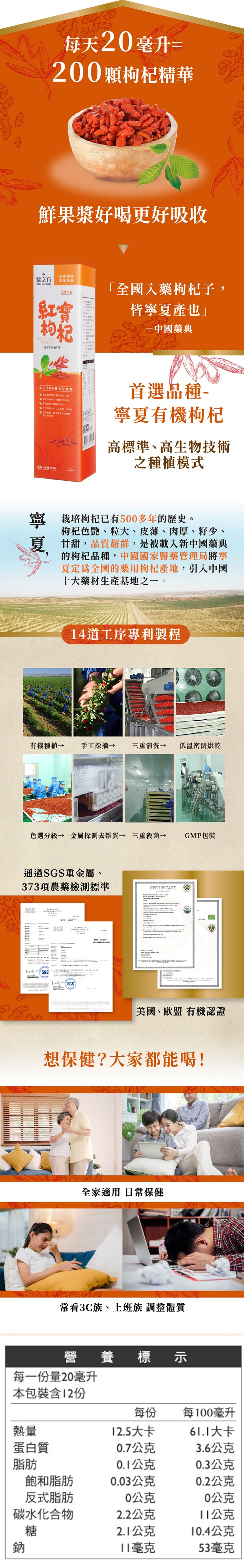 ●採用專利製程,每天飲用20毫升=200顆枸杞精華