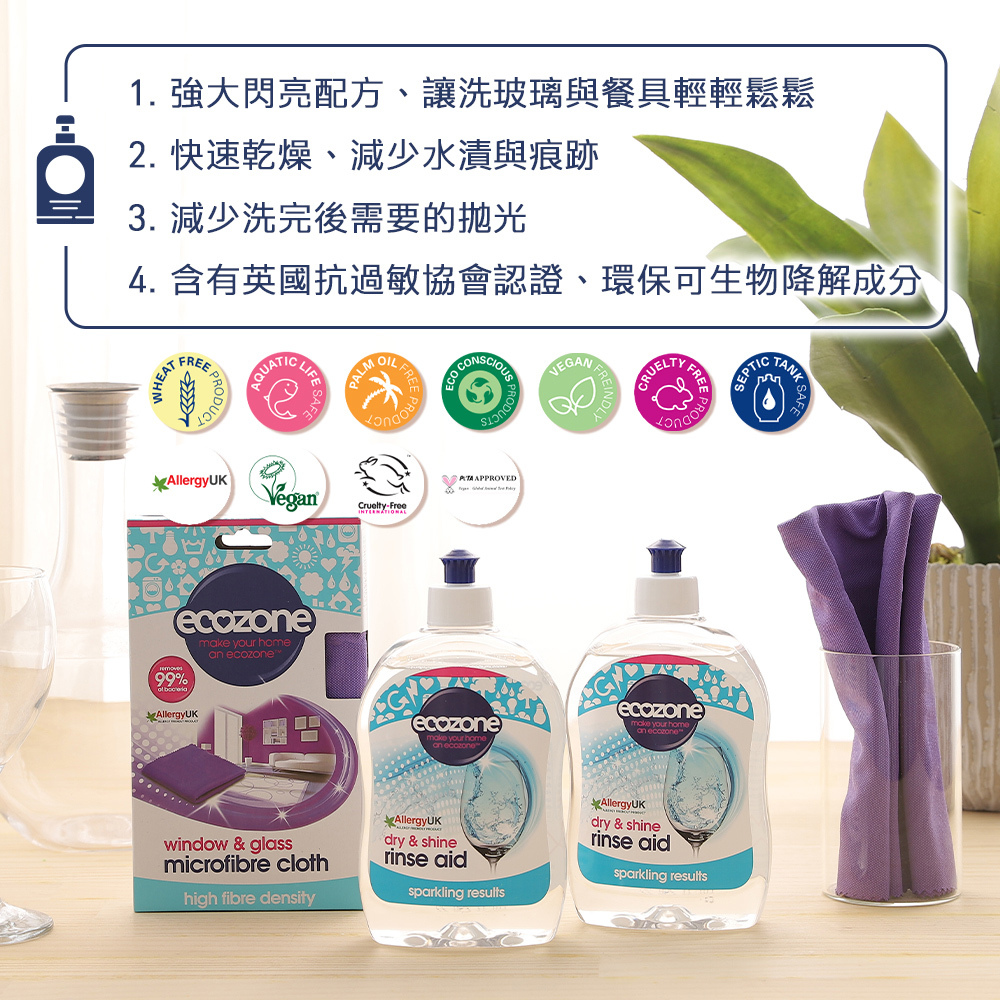 能有效更快清洗這些盤子,減少水痕、污跡和條紋,無刺激性化學物,能有效讓玻璃類更光亮與乾淨。