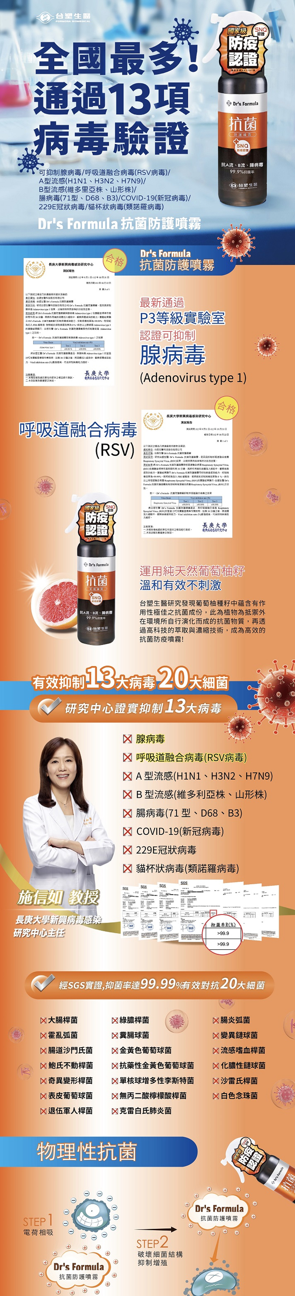 全國最多!通過13項病毒驗證,包含【腺病毒、RSV病毒、新冠病毒、229E冠狀病毒、腸病毒、A/B型流感】。