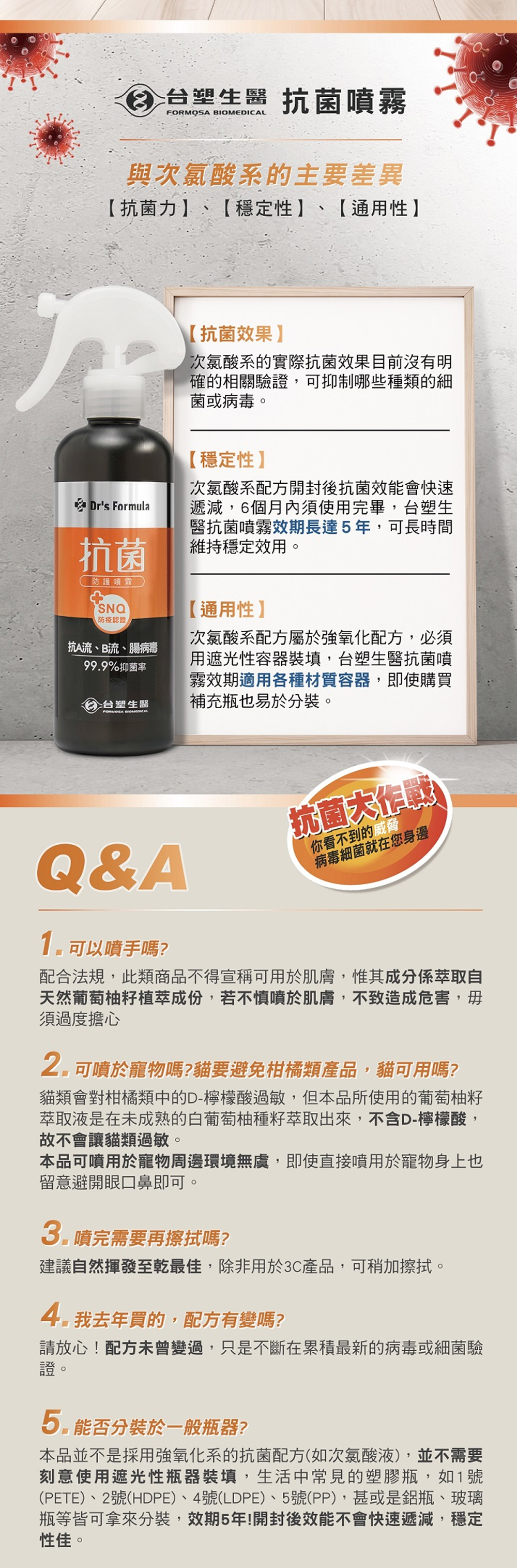 【台塑生醫】Formula 抗菌防護噴霧1kg 補充瓶