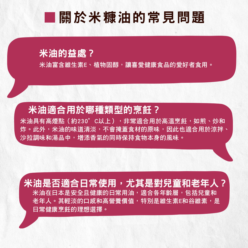 輕淡口感:米油的味道相對較輕淡,不會對食物的味道造成過多的干擾。這使得它在各種料理中都能夠良好地融入食材的本味。