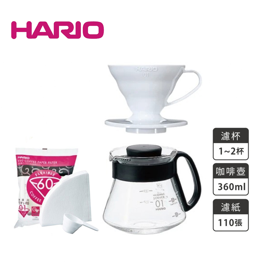 內容:V60樹脂濾杯1~2杯 x1 + 經典咖啡壺360mlx1